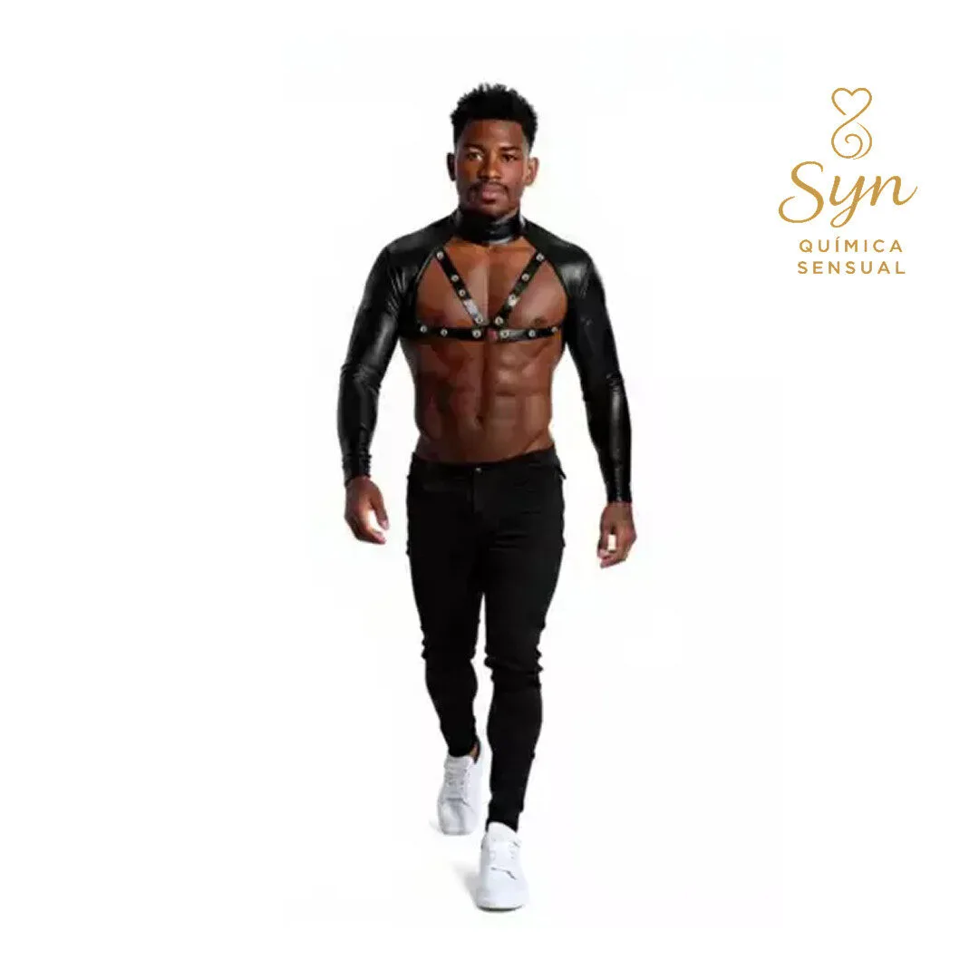 Un diseño de lujo pensado para un look masculino. Arnés exclusivo de Different Touch. Con frente con aro y detalles en metal.